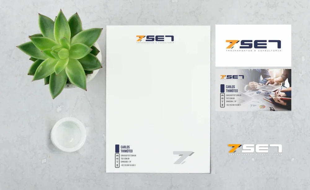Seguindo o conceito de que a melhor solução é aquela que é fácil de compreender, o Branding da 7Set é clean, direto e organizado. Seguindo a mesma identidade para a papelaria e o site.