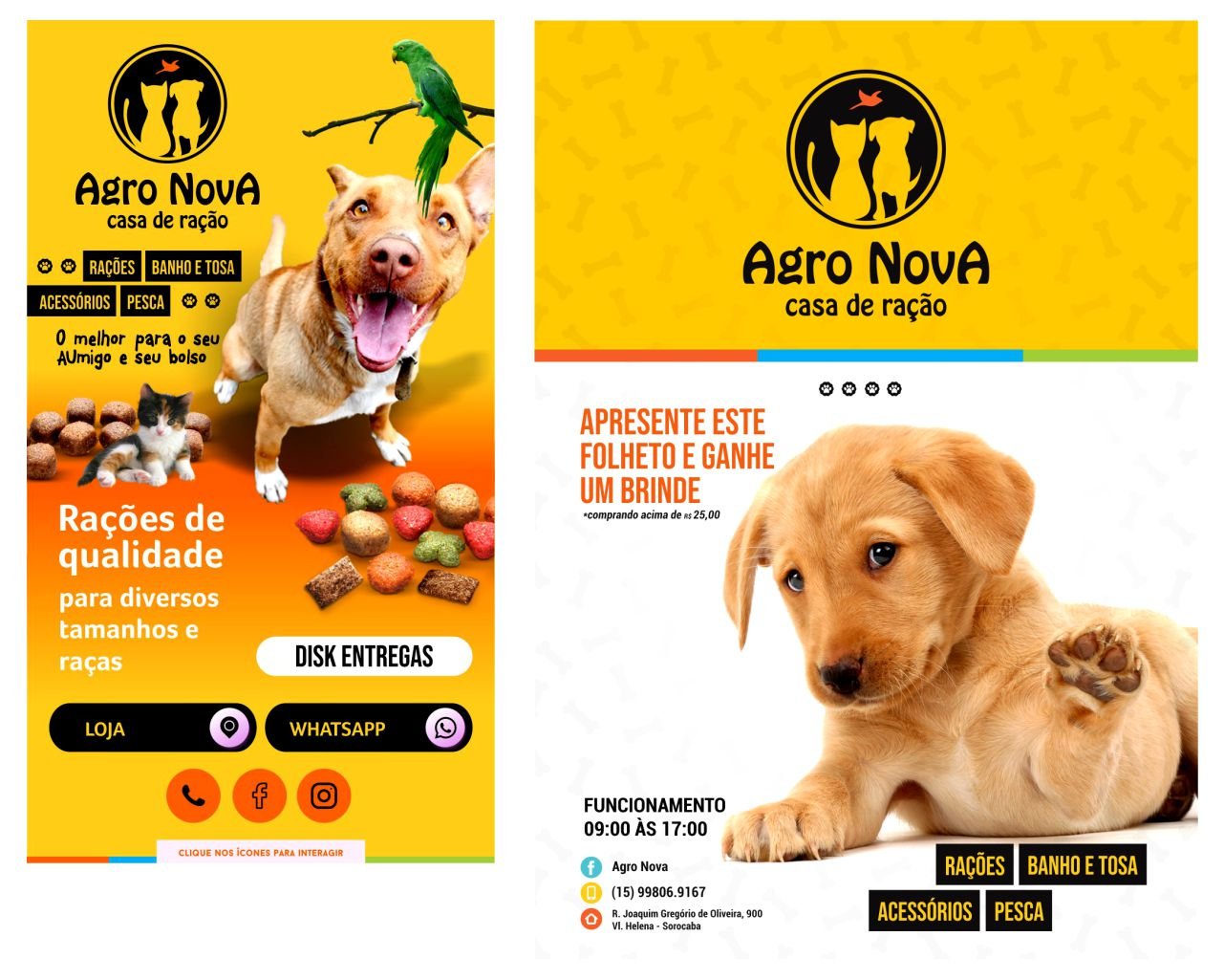 Este projeto de Branding e Identidade Visual foca em gerar resultados no varejo, posicionando a Agro Nova como a casa de ração de confiança para o seu pet em Sorocaba e região.