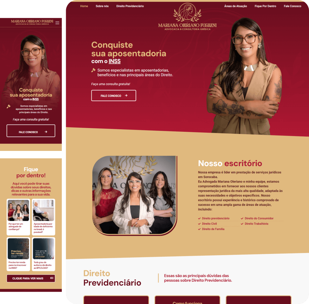 O projeto Mariana Oleriano Advocacia exigiu um Site Onepage que comunicasse a especialização em Direito Previdenciário e de Família.