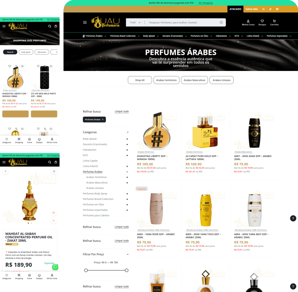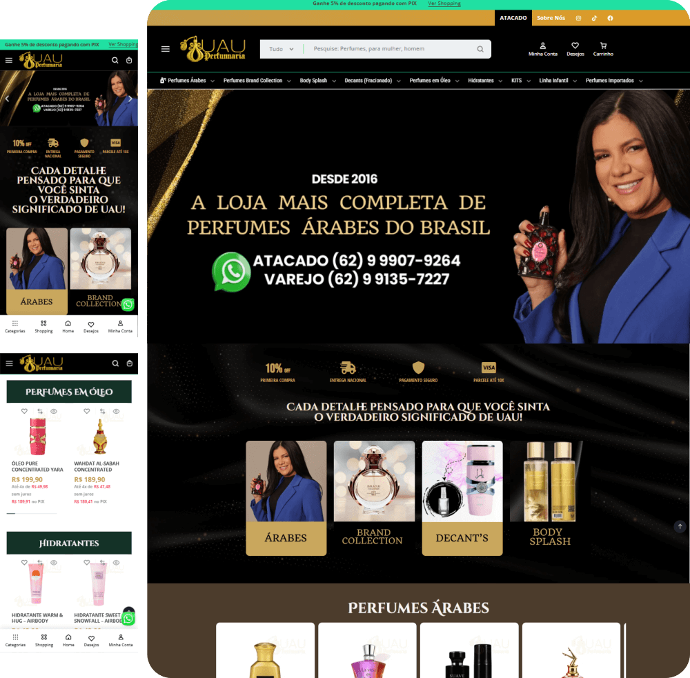 O projeto Uau Perfumaria exigiu um e-commerce que não apenas vendesse perfumes, mas que oferecesse uma experiência de compra sofisticada, reforçando sua autoridade no mercado brasileiro de fragrâncias.